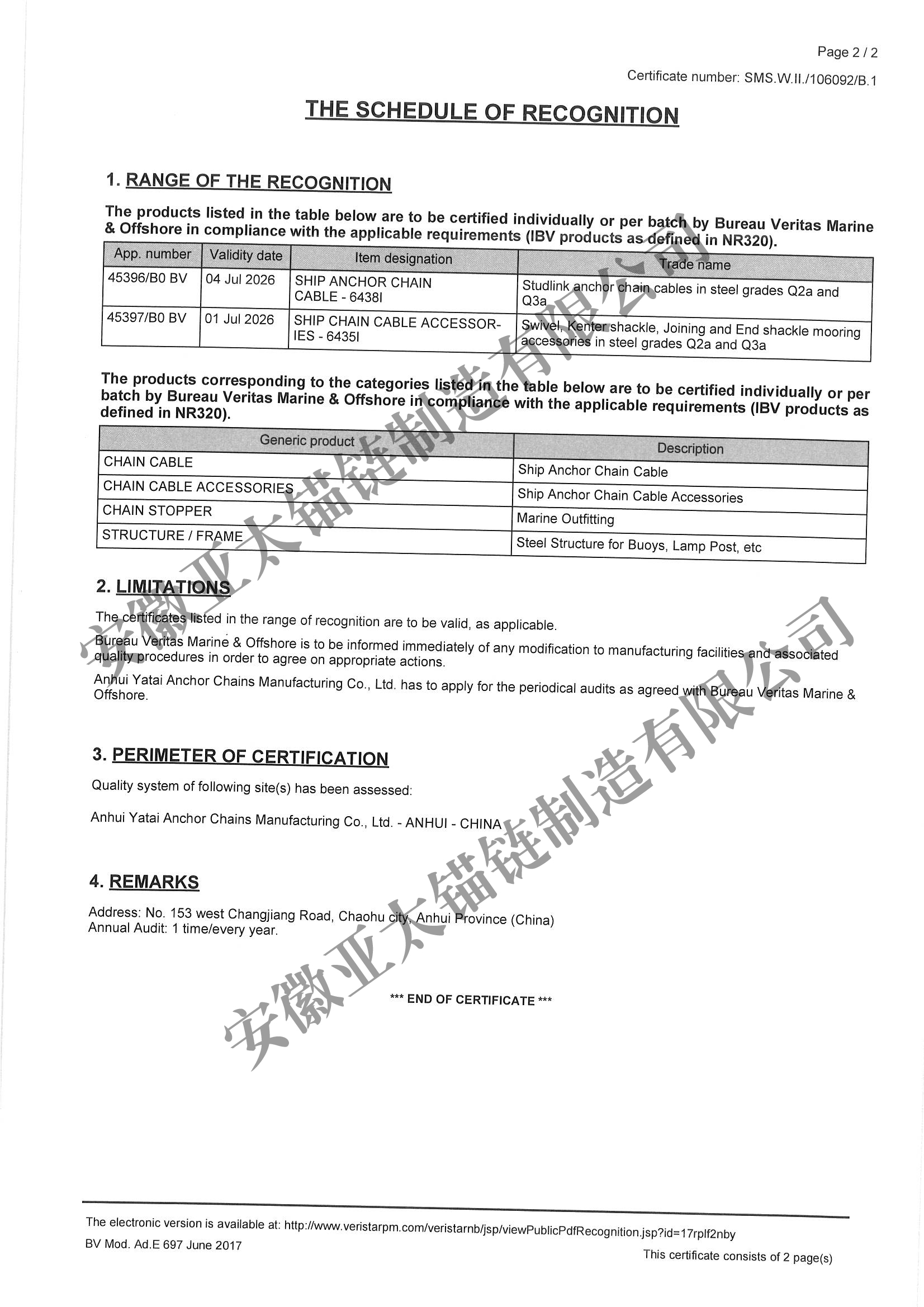 安徽亞太錨鏈制造有限公司是國家高新技術企業,也是國家GB/T 549-2017《電焊錨鏈》標準的起草和制定單位之一。公司旗下設有錨鏈分廠、浮標分廠、舾裝件分廠等多個分廠。公司專業從事φ12.5mm-φ107mm二、三級船用錨鏈、浮標錨鏈、錨鏈附件,錨、船舶曬裝產品、航標、系船浮、船型標、多種規格海洋監測浮標及航標燈等產品的生產、安裝和服務。目前公司的產品銷往全國各地船廠、碼頭、航標處、航道局、海洋局,并已走上國際市場,如東南亞、中東、歐美等國家。